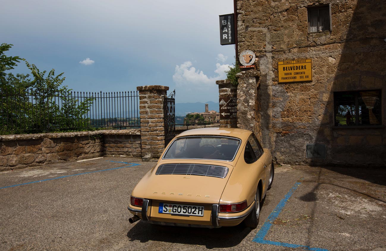 Über eine Stunde dauert es, bis wir uns am Montagmorgen durch den hektisch-anarchischen Verkehr in der Innenstadt von Rom gewühlt haben. Papa Leone hält sich tapfer! Auf der Route der antiken Via Cassia, die auch von der jährlichen Mille Miglia gern genutzt wird, fahren wir nordwärts, biegen dann aber ab in Richtung Lago di Vico. Die Landstraßen sind – im Unterschied zum Lungotevere und anderen römischen Hauptverkehrsstraßen – heute Morgen frei, so dass wir „unserm Elfer“ freien Lauf lassen können.