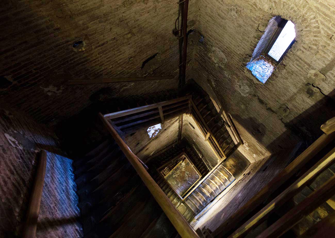 Der Abstieg durch das uralte Treppenhaus des Turms ist ein Wagnis, bei dem man besser den Blick nicht nach unten wendet.